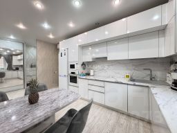 Код объекта: 2063721. В квартире дизайнерский ремонт из натуральных материалов, делался для себя. Стилизовано под загородный дом. Мебель вся новая, приобретена в апреле 2024 года. Квартира оборудована очень удобной системой выключателей света с любого места и множеством розеток, в том числе числе с usb-разъемами. Кухня-гостиная: кухонный гарнитур , двухкамерный холодильник, микроволновая печь, большая индукционная плита, духовой шкаф с максимальным набором функций, кран с фильтром и носиком для питьевой воды, встроенный измельчитель, вытяжка, большой раздвижной диван, диванный столик-трансформер для рабочего места, большой раздвижной стол из массива березы и 4 стула, телевизор Hisense 55 дм, рулонные шторы блэкаут (Италия), тюль и шторы, кондиционер воздуха Митсубиси, комод из натурального дерева, 2 люстры, 4 бра, кухонная подсветка. Потолок подвесной, на потолке балки из натурального дерева (сосна). Спальня: двухспальная кровать биг, ортопедический высокий матрас высокого класса, 2 тумбочки и бра, шторы блэк-аут, ростовое зеркало, комод 160 см, телевизор Hisense 55 дм, полностью стеклянные раздвижные двери купе на лоджию во всю высоту стены, кондиционер воздуха Митсубиси, при этом полностью утепленная конструкция. В темное время суток из спальни открывается вид на тихую территорию Сколково, усыпанную огнями уличной подсветки, а также можно мягко подсветить ее фонарями лоджии. Лоджия: пол-плитка с подогревом, люстра и бра, длинная барная стойка из массива ясеня с барными стульями и надбарными подвесными фонарями. Есть возможность организовать рабочее место: проведены 8 розеток для компьютерного стола. Чудесно любоваться закатом. Ванная комната: ванна, огромное зеркало, люстра и 2 подвеса над раковиной, высокая мозаичная полка-конструкция для разных предметов, например, свечей, унитаз, длинная столешница, из искусственного камня, тумбочка, стиральная машина, встроенный выдвижной ящик для белья, бойлер на 100 литров, электрический полотенцесушитель, вместительное пространство для хранения под ванной, цветная плитка. Квартира оборудована системой Водяной (датчики воды на полу) В коридоре имеется большой шкаф-купе с автоматической внутренней подсветкой. Интернет проведен. В прихожей имеется обувница, также прихожая выложена плиткой. В квартире тишина, соседи тихие, территория тоже, шум транспорта отсутствует, подъезд широкий и светлый. Перебоев с водой и светом в подъезде не возникает. Проживание в Панораме Сколково идеально для людей, которым понравится организованная для жизни инфраструктуру. Звоните , договоримся на показ. Залог возможно разбить на 2 месяца. С животными категорически не рассматриваем проживание.