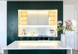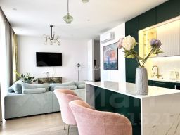 - Огромнейшая кухня-гостиная 58,3 кв.м. с высоченными потолками 6 метров. Обеденная зона на 10 персон, ТВ зона с шикарным диваном для уютных посиделок в большой компании, 4 огромнейших и 5 маленьких окон сполна освещают все пространство.