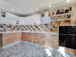Просторная кухня-гостиная(11.3 кв м) , оборудованная встроенной техникой Boch( холодильник, варочная панель, духовой шкаф, посудомоечная машина).