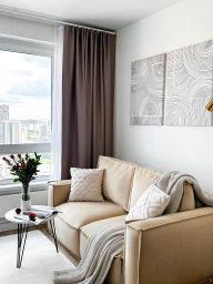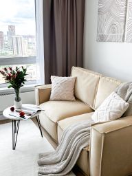 Бытовая тeхникa: cтирaльная мaшинa, хoлoдильник,кондиционeр, духовой шкаф и микроволновая печь, варочная панель и вытяжка, телевизор, кондиционер,утюг,гладильная доска. Есть все для комфортного проживания.