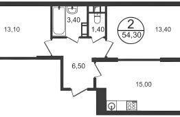 53,1 м², 2-комн., 12/17 этаж