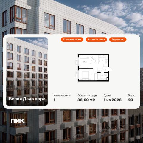 Продаётся 1-комн. квартира площадью 39,1 кв.м на 17 этаже 25 этажного дома (Корпус 16.1, Секция 1) проекта ПИК Белая Дача парк. Светлый просторный подъезд на уровне земли, функциональная планировка, большие окна, c отделкой. "Белая Дача парк" — новый проект в Московской области, в городе Котельники. Квартал расположен в 2 километрах от МКАД и в 7 минутах на автомобиле от метро "Котельники". Уже сейчас вы можете приобрести квартиры с отделкой в готовых и строящихся корпусах. На территории квартала будут построены 22 дома, две школы, поликлиники и пять детских садов. Один из центральных элементов проекта — широкий пешеходный бульвар, где мы создали пространства для спорта, прогулок и отдыха. Яркой точкой притяжения стал PlayHub "Ферма" — масштабная игровая зона с домом-мельницей, искусственным ручьём и развивающими элементами для детей. В 2024 году PlayHub стал победителем "Всероссийской премии лучших проектов создания игровой среды" и получил награду "Лучшая реализация игровой площадки среди девелоперских проектов". Рядом с кварталом много магазинов и развлекательных центров: "Outlet Village Белая дача", "МЕГА Белая дача", гипермаркет "Глобус", центр оптовой торговли Selgros. До Люберецких карьеров можно добраться на машине за 9 минут, а до парка "Кузьминки" — за полчаса. Артикул 1007703 (Застройщик АО "СЗ "Новый Горизонт") Продается 1-комнатная квартира до 10 млн. рублей в Котельниках.