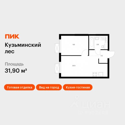 Продаётся 1-комн. квартира площадью 31,8 кв.м на 6 этаже 25 этажного дома (Корпус 10, Секция 1) проекта ПИК Кузьминский лес. Светлый просторный подъезд на уровне земли, функциональная планировка, большие окна, c отделкой. Жилой квартал "Кузьминский лес" находится в Московской области, в городе Котельники. Отсюда за 18 минут можно дойти до метро "Котельники", а за 5 минут — доехать на машине до МКАД. В проекте — жилые дома с уютными дворами, школа, детский сад, подземные и гостевые паркинги. Вокруг — развитый район с детскими садами, школами и поликлиниками. Рядом есть стадион, "МЕГА Белая Дача" и гипермаркеты Selgros, Castorama и Real. Отдохнуть от городской жизни можно в Кузьминском парке и усадьбе "Белая Дача", которые совсем недалеко от "Кузьминского леса". Артикул 583059 (Застройщик АО "Компания АТОЛ") Продается 1-комнатная квартира 30 м2 в Котельниках.