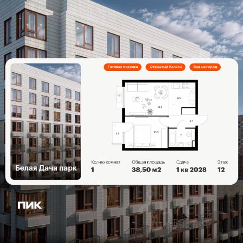 Продаётся 1-комн. квартира площадью 38,5 кв.м на 12 этаже 20 этажного дома (Корпус 16.2, Секция 7) проекта ПИК Белая Дача парк. Светлый просторный подъезд на уровне земли, функциональная планировка, большие окна, c отделкой. "Белая Дача парк" — новый проект в Московской области, в городе Котельники. Квартал расположен в 2 километрах от МКАД и в 7 минутах на автомобиле от метро "Котельники". Уже сейчас вы можете приобрести квартиры с отделкой в готовых и строящихся корпусах. На территории квартала будут построены 22 дома, две школы, поликлиники и пять детских садов. Один из центральных элементов проекта — широкий пешеходный бульвар, где мы создали пространства для спорта, прогулок и отдыха. Яркой точкой притяжения стал PlayHub "Ферма" — масштабная игровая зона с домом-мельницей, искусственным ручьём и развивающими элементами для детей. В 2024 году PlayHub стал победителем "Всероссийской премии лучших проектов создания игровой среды" и получил награду "Лучшая реализация игровой площадки среди девелоперских проектов". Рядом с кварталом много магазинов и развлекательных центров: "Outlet Village Белая дача", "МЕГА Белая дача", гипермаркет "Глобус", центр оптовой торговли Selgros. До Люберецких карьеров можно добраться на машине за 9 минут, а до парка "Кузьминки" — за полчаса. Артикул 1008928 (Застройщик АО "СЗ "Новый Горизонт")