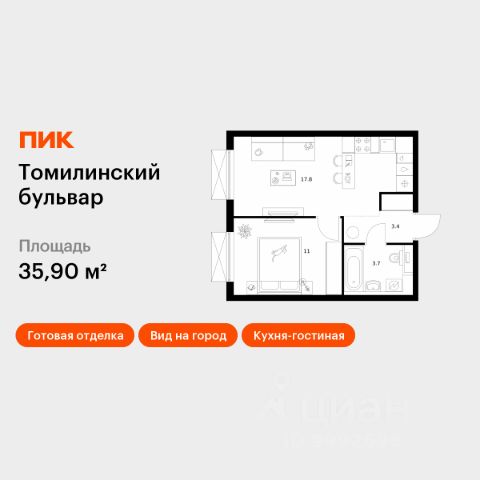 Продаётся 1-комн. квартира площадью 35,9 кв.м на 2 этаже 25 этажного дома (Корпус 5-8, Секция 2) проекта ПИК Томилинский бульвар. Светлый просторный подъезд на уровне земли, функциональная планировка, большие окна, c отделкой. Жилой квартал "Томилинский бульвар" возводится рядом с Кузьминским парком в Котельниках. В 20 минутах пешком метро "Котельники", а на автомобиле 4 минуты до Новорязанского шоссе и 6 минут - до МКАД. В жилом квартале 11 корпусов. Высота домов - 25 этажей. В "Томилинском бульваре" будут три собственных детских сада, поликлиника, паркинги для жителей и гостей квартала, парки с Wi-Fi во дворе каждого дома - с местами для спокойного отдыха, спортивными и детскими площадками. На первых этажах откроются кафе, магазины и другие сервисы, важные для комфортной жизни. В районе, где строится "Томилинский бульвар", всё рядом: школы, детские сады, магазины, торговые центры - например, до "МЕГА Белая Дача" можно доехать за 15 минут. Ещё здесь много мест для прогулок и отдыха на природе, совсем рядом благоустроенный сквер "Патриот". В 13 минутах пешком находится парк "Кузьминки", а в 12 минутах на автомобиле - Люберецкие карьеры, где можно ловить рыбу, загорать и заниматься водными видами спорта в экстрим-парке. Артикул 578027 (Застройщик АО "Яркий мир") Продается 1-комнатная квартира на 2 этаже в Котельниках.