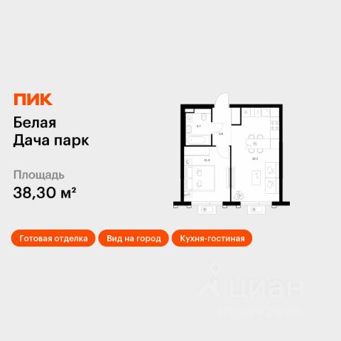 Продаётся 1-комн. квартира площадью 45 кв.м на 8 этаже 14 этажного дома (Корпус 16.1, Секция 2) проекта ПИК Белая Дача парк. Светлый просторный подъезд на уровне земли, функциональная планировка, большие окна, c отделкой. "Белая Дача парк" — новый проект в Московской области, в городе Котельники. Квартал расположен в 2 километрах от МКАД и в 7 минутах на автомобиле от метро "Котельники". Уже сейчас вы можете приобрести квартиры с отделкой в готовых и строящихся корпусах. На территории квартала будут построены 22 дома, две школы, поликлиники и пять детских садов. Один из центральных элементов проекта — широкий пешеходный бульвар, где мы создали пространства для спорта, прогулок и отдыха. Яркой точкой притяжения стал ПлейХаб "Ферма" — масштабная игровая зона с домом-мельницей, искусственным ручьём и развивающими элементами для детей. В 2024 году ПлейХаб стал победителем "Всероссийской премии лучших проектов создания игровой среды" и получил награду "Лучшая реализация игровой площадки среди девелоперских проектов". Рядом с кварталом много магазинов и развлекательных центров: "МЕГА Белая дача" и гипермаркет "Глобус". До Люберецких карьеров можно добраться на машине за 9 минут, а до парка "Кузьминки" — за полчаса. Артикул 1007890 (Застройщик АО "СЗ "Новый Горизонт")