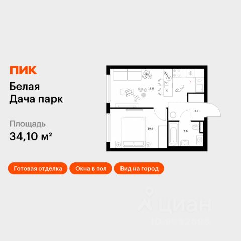 Продаётся 1-комн. квартира площадью 30,9 кв.м на 3 этаже 15 этажного дома (Корпус 16.2, Секция 6) проекта ПИК Белая Дача парк. Светлый просторный подъезд на уровне земли, функциональная планировка, большие окна, c отделкой. "Белая Дача парк" — новый проект в Московской области, в городе Котельники. Квартал расположен в 2 километрах от МКАД и в 7 минутах на автомобиле от метро "Котельники". Уже сейчас вы можете приобрести квартиры с отделкой в готовых и строящихся корпусах. На территории квартала будут построены 22 дома, две школы, поликлиники и пять детских садов. Один из центральных элементов проекта — широкий пешеходный бульвар, где мы создали пространства для спорта, прогулок и отдыха. Яркой точкой притяжения стал PlayHub "Ферма" — масштабная игровая зона с домом-мельницей, искусственным ручьём и развивающими элементами для детей. В 2024 году PlayHub стал победителем "Всероссийской премии лучших проектов создания игровой среды" и получил награду "Лучшая реализация игровой площадки среди девелоперских проектов". Рядом с кварталом много магазинов и развлекательных центров: "Outlet Village Белая дача", "МЕГА Белая дача", гипермаркет "Глобус", центр оптовой торговли Selgros. До Люберецких карьеров можно добраться на машине за 9 минут, а до парка "Кузьминки" — за полчаса. Артикул 1008665 (Застройщик АО "СЗ "Новый Горизонт") 1-комнатная квартира в микрорайоне Парковый в городе Котельники.
