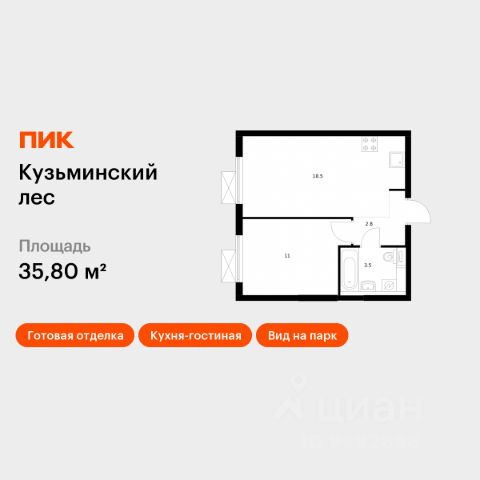 • ✓ В базе Циан 286 1-комнатных квартир с большой кухней в Котельниках
