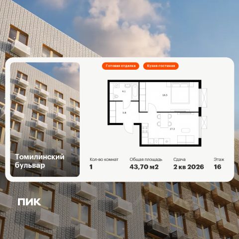 Продаётся 1-комн. квартира площадью 34 кв.м на 11 этаже 25 этажного дома (Корпус 5-8, Секция 2) проекта ПИК Томилинский бульвар. Светлый просторный подъезд на уровне земли, функциональная планировка, большие окна, c отделкой. Жилой квартал "Томилинский бульвар" возводится рядом с Кузьминским парком в Котельниках. В 20 минутах пешком метро "Котельники", а на автомобиле 4 минуты до Новорязанского шоссе и 6 минут - до МКАД. В жилом квартале 11 корпусов. Высота домов - 25 этажей. В "Томилинском бульваре" будут три собственных детских сада, поликлиника, паркинги для жителей и гостей квартала, парки с Wi-Fi во дворе каждого дома - с местами для спокойного отдыха, спортивными и детскими площадками. На первых этажах откроются кафе, магазины и другие сервисы, важные для комфортной жизни. В районе, где строится "Томилинский бульвар", всё рядом: школы, детские сады, магазины, торговые центры - например, до "МЕГА Белая Дача" можно доехать за 15 минут. Ещё здесь много мест для прогулок и отдыха на природе, совсем рядом благоустроенный сквер "Патриот". В 13 минутах пешком находится парк "Кузьминки", а в 12 минутах на автомобиле - Люберецкие карьеры, где можно ловить рыбу, загорать и заниматься водными видами спорта в экстрим-парке. Артикул 575974 (Застройщик АО "Яркий мир")
