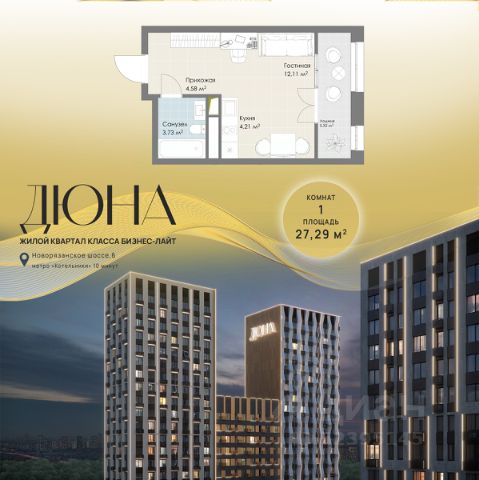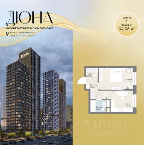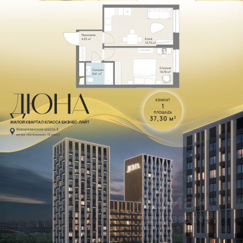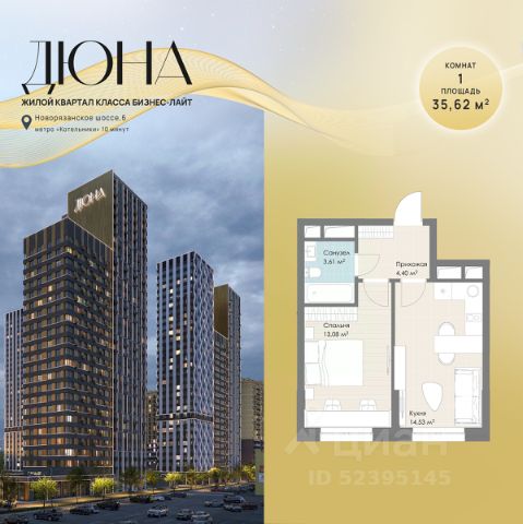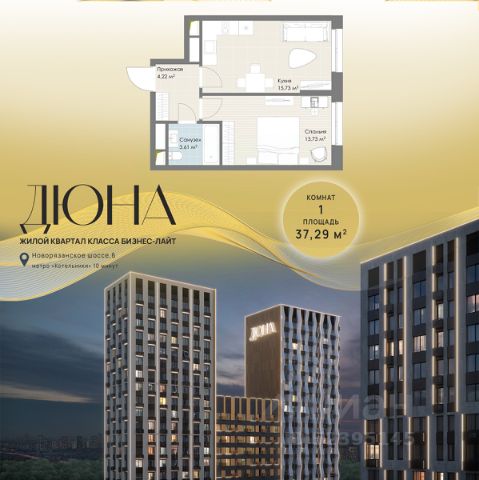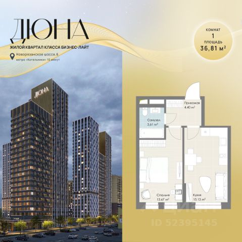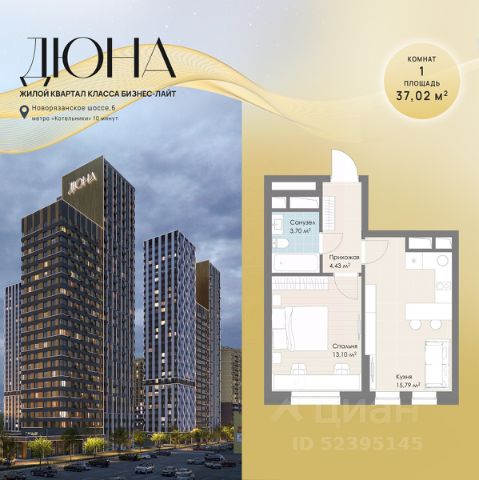 Продаётся 1-комнатная квартира в строящемся доме (Корпус 4), срок сдачи: II-кв. 2028, общей площадью 37.49 кв.м., на 19 этаже. Многоквартирный жилой комплекс с подземной автостоянкой и встроенно-пристроенным ДОУ на 120 мест по адресу: Московская область, г.о. Котельники, Новорязанское шоссе, вл. 6, комплекс 1