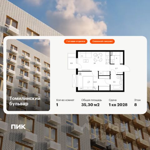 Продаётся 1-комн. квартира площадью 35 кв.м на 8 этаже 25 этажного дома (Корпус 5-8, Секция 1) проекта ПИК Томилинский бульвар. Светлый просторный подъезд на уровне земли, функциональная планировка, большие окна, c отделкой. Жилой квартал "Томилинский бульвар" возводится рядом с Кузьминским парком в Котельниках. В 20 минутах пешком метро "Котельники", а на автомобиле 4 минуты до Новорязанского шоссе и 6 минут - до МКАД. В жилом квартале 11 корпусов. Высота домов - 25 этажей. В "Томилинском бульваре" будут три собственных детских сада, поликлиника, паркинги для жителей и гостей квартала, парки с Wi-Fi во дворе каждого дома - с местами для спокойного отдыха, спортивными и детскими площадками. На первых этажах откроются кафе, магазины и другие сервисы, важные для комфортной жизни. В районе, где строится "Томилинский бульвар", всё рядом: школы, детские сады, магазины, торговые центры - например, до "МЕГА Белая Дача" можно доехать за 15 минут. Ещё здесь много мест для прогулок и отдыха на природе, совсем рядом благоустроенный сквер "Патриот". В 13 минутах пешком находится парк "Кузьминки", а в 12 минутах на автомобиле - Люберецкие карьеры, где можно ловить рыбу, загорать и заниматься водными видами спорта в экстрим-парке. Артикул 578677 (Застройщик АО "Яркий мир")