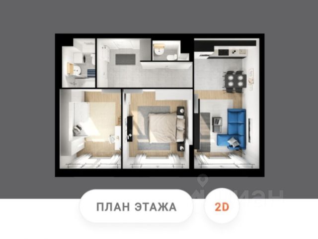2 изолированные комнаты по 17 кв.м. В каждой комнате выполнена просторная рабочая зона со стеллажами. В спальне встроенный вместительный шкаф-купе.