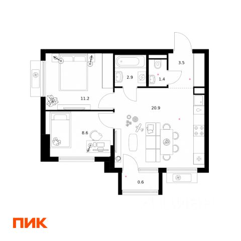 Продается прекрасная светлая квартира с двумя спальнями и большой кухней-гостиной, с лоджией 4,9 м. и двумя санузлами в ЖК бизнес-класса "Дюна". Это единственный ЖК бизнес-класса расположенный в районе метро Котельники. До метро шагом 15 минут, от него за 25 минут можно доехать до центра Москвы без пересадок. Также можно доехать за 5-7 минут до станции МЦД-3 Люберцы. ЖК расположен в 4 км от МКАД, на пересечении Новорязанского и Дзержинского шоссе.