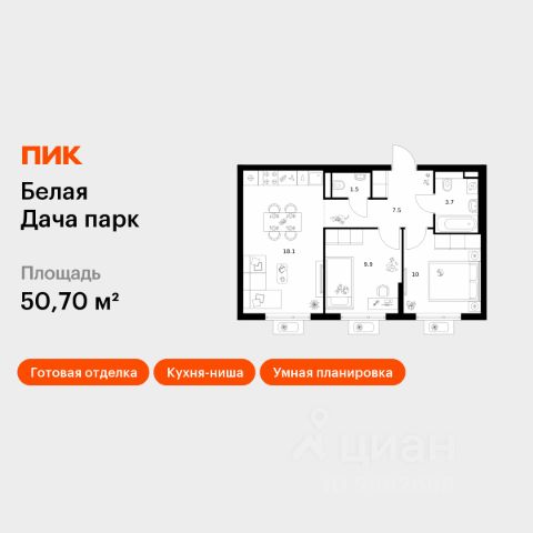 Продаётся 2-комн. квартира площадью 51,3 кв.м на 12 этаже 17 этажного дома (Корпус 22.1, Секция 5) проекта ПИК Белая Дача парк. Светлый просторный подъезд на уровне земли, функциональная планировка, большие окна, c отделкой. "Белая Дача парк" — новый проект в Московской области, в городе Котельники. Квартал расположен в 2 километрах от МКАД и в 7 минутах на автомобиле от метро "Котельники". Уже сейчас вы можете приобрести квартиры с отделкой в готовых и строящихся корпусах. На территории квартала будут построены 22 дома, две школы, поликлиники и пять детских садов. Один из центральных элементов проекта — широкий пешеходный бульвар, где мы создали пространства для спорта, прогулок и отдыха. Яркой точкой притяжения стал ПлейХаб "Ферма" — масштабная игровая зона с домом-мельницей, искусственным ручьём и развивающими элементами для детей. В 2024 году ПлейХаб стал победителем "Всероссийской премии лучших проектов создания игровой среды" и получил награду "Лучшая реализация игровой площадки среди девелоперских проектов". Рядом с кварталом много магазинов и развлекательных центров: "МЕГА Белая дача" и гипермаркет "Глобус". До Люберецких карьеров можно добраться на машине за 9 минут, а до парка "Кузьминки" — за полчаса. Артикул 1055650 (Застройщик АО "СЗ "Новый Горизонт") Продам 2-комнатную квартиру с отделкой от застройщика в Котельниках.