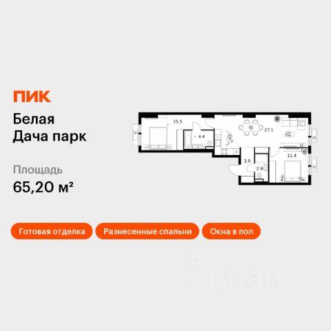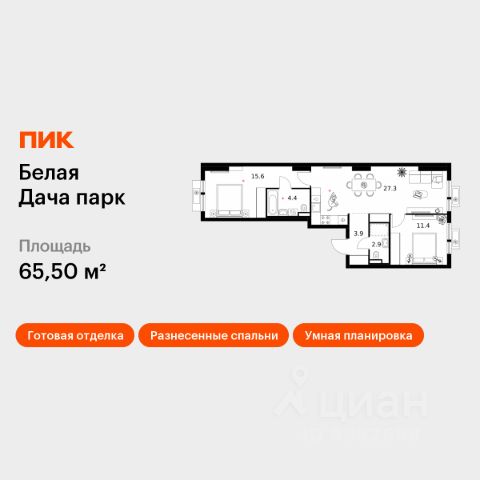 Продаётся 2-комн. квартира площадью 59,4 кв.м на 7 этаже 15 этажного дома (Корпус 19.1, Секция 3) проекта ПИК Белая Дача парк. Светлый просторный подъезд на уровне земли, функциональная планировка, большие окна, c отделкой. "Белая Дача парк" — новый проект в Московской области, в городе Котельники. Квартал расположен в 2 километрах от МКАД и в 7 минутах на автомобиле от метро "Котельники". Уже сейчас вы можете приобрести квартиры с отделкой в готовых и строящихся корпусах. На территории квартала будут построены 22 дома, две школы, поликлиники и пять детских садов. Один из центральных элементов проекта — широкий пешеходный бульвар, где мы создали пространства для спорта, прогулок и отдыха. Яркой точкой притяжения стал PlayHub "Ферма" — масштабная игровая зона с домом-мельницей, искусственным ручьём и развивающими элементами для детей. В 2024 году PlayHub стал победителем "Всероссийской премии лучших проектов создания игровой среды" и получил награду "Лучшая реализация игровой площадки среди девелоперских проектов". Рядом с кварталом много магазинов и развлекательных центров: "Outlet Village Белая дача", "МЕГА Белая дача", гипермаркет "Глобус", центр оптовой торговли Selgros. До Люберецких карьеров можно добраться на машине за 9 минут, а до парка "Кузьминки" — за полчаса. Артикул 566779 (Застройщик АО "СЗ "Новый Горизонт") Купить 2-комнатную квартиру в новостройке с отделкой в микрорайоне Парковый в городе Котельники.