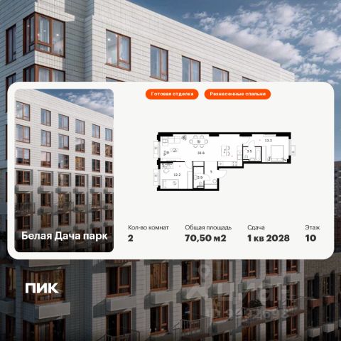 Современный жилой квартал бизнес-класса "Дюна" расположен в 10 минутах ходьбы от станции метро "Котельники" (1,2 км) на пересечении Новорязанского и Дзержинского шоссе. Квартал находится в районе с развитой инфраструктурой: в непосредственной близости расположены школы, детские сады, поликлиники, а также гипермаркеты и торговые комплексы, такие как "Metro", "Глобус", "Лемана Про" (Леруа Мерлен), "МЕГА Белая Дача", "Outlet Village Белая Дача" и другие. В шаговой доступности находятся физкультурно-оздоровительный комплекс с бассейном и теннисными кортами, а также благоустроенный лесопарк "Кузьминки" площадью 1189 га. Неподалёку расположены пляжи Дзержинских карьеров с экстрим-парком и горнолыжными трассами, Томилинский лесопарк с лыжной базой и Жулебинский лесопарк. Застройщик реализует современную урбанистическую концепцию "Город в городе", которая подразумевает наличие собственной полноценной инфраструктуры на территории жилого комплекса, включая школу, детские сады, торговую галерею, бизнес-центр, пункт полиции и медицинский центр. Общая площадь застройки составляет 12,2 га. Квартиры представлены в диапазоне планировок от студий до четырёхкомнатных, в обычном и евроформате. На этажах расположено от 3 до 4 бесшумных скоростных лифтов при количестве квартир от 4 до 7 на этаже. Квартиры сдаются с предчистовой отделкой (white box). Здания переменной этажности строятся по технологии монолит-кирпич, а фасады выполнены с использованием инновационной системы вентилируемого комбинированного фасада.Комфорт на внутренней территории обеспечивается за счёт принципа "двор без машин", системы доступа по карте и круглосуточного видеонаблюдения. Приобрести квартиру можно с использованием материнского капитала, беспроцентной рассрочки или ипотечных программ. При 100% оплате предусмотрены индивидуальные условия. Продается 2-комнатная квартира с отделкой в Котельниках.