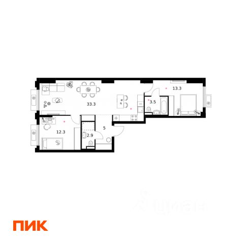 2-комнатная квартира с отделкой "WhiteBox", площадью 60.1 кв.м., распашная, две изолированные комнаты, кухня, санузел раздельный, гардеробная, расположена на комфортном 7-м этаже, срок сдачи комплекса 3-й квартал 2027 года.