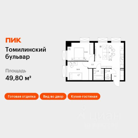 Продаётся 2-комн. квартира площадью 50,3 кв.м на 7 этаже 25 этажного дома (Корпус 5-8, Секция 2) проекта ПИК Томилинский бульвар. Светлый просторный подъезд на уровне земли, функциональная планировка, большие окна, c отделкой. Жилой квартал "Томилинский бульвар" возводится рядом с Кузьминским парком в Котельниках. В 20 минутах пешком метро "Котельники", а на автомобиле 4 минуты до Новорязанского шоссе и 6 минут - до МКАД. В жилом квартале 11 корпусов. Высота домов - 25 этажей. В "Томилинском бульваре" будут три собственных детских сада, поликлиника, паркинги для жителей и гостей квартала, парки с Вайфай во дворе каждого дома - с местами для спокойного отдыха, спортивными и детскими площадками. На первых этажах откроются кафе, магазины и другие сервисы, важные для комфортной жизни. В районе, где строится "Томилинский бульвар", всё рядом: школы, детские сады, магазины, торговые центры - например, до "МЕГА Белая Дача" можно доехать за 15 минут. Ещё здесь много мест для прогулок и отдыха на природе, совсем рядом благоустроенный сквер "Патриот". В 13 минутах пешком находится парк "Кузьминки", а в 12 минутах на автомобиле - Люберецкие карьеры, где можно ловить рыбу, загорать и заниматься водными видами спорта в экстрим-парке. Артикул 578715 (Застройщик АО "Яркий мир")