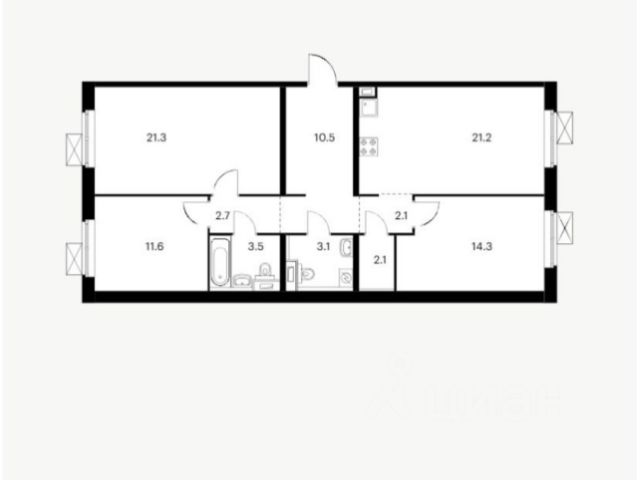 Комната 17,7, комната 16,3, комната 13,1, кухня-студия 20,5, сан узел 3,5, сан узел 4,4, гардеробная 2м2, балкон 1,4 м2
