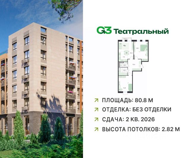Продаётся 3-комнатная квартира в строящемся доме (Корпус 20), срок сдачи: II-кв. 2026, общей площадью 72.2 кв.м., на 4 этаже. Расположение, транспортная доступность