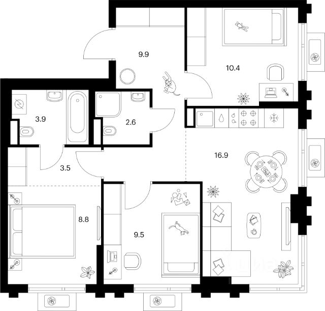 - пешая доступность до новых современных городских поликлиник (взрослая, детская, стоматология);