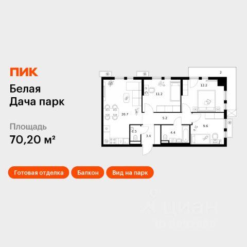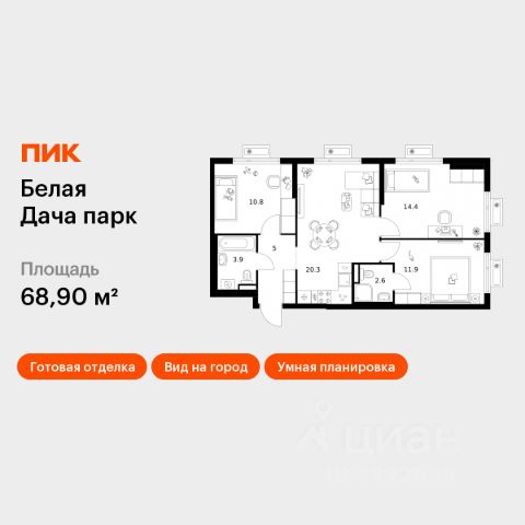 Продаётся 3-комн. квартира площадью 67,3 кв.м на 12 этаже 25 этажного дома (Корпус 22.2, Секция 6) проекта ПИК Белая Дача парк. Светлый просторный подъезд на уровне земли, функциональная планировка, большие окна, c отделкой. "Белая Дача парк" — новый проект в Московской области, в городе Котельники. Квартал расположен в 2 километрах от МКАД и в 7 минутах на автомобиле от метро "Котельники". Уже сейчас вы можете приобрести квартиры с отделкой в готовых и строящихся корпусах. На территории квартала будут построены 22 дома, две школы, поликлиники и пять детских садов. Один из центральных элементов проекта — широкий пешеходный бульвар, где мы создали пространства для спорта, прогулок и отдыха. Яркой точкой притяжения стал ПлейХаб "Ферма" — масштабная игровая зона с домом-мельницей, искусственным ручьём и развивающими элементами для детей. В 2024 году ПлейХаб стал победителем "Всероссийской премии лучших проектов создания игровой среды" и получил награду "Лучшая реализация игровой площадки среди девелоперских проектов". Рядом с кварталом много магазинов и развлекательных центров: "МЕГА Белая дача" и гипермаркет "Глобус". До Люберецких карьеров можно добраться на машине за 9 минут, а до парка "Кузьминки" — за полчаса. Артикул 1055945 (Застройщик АО "СЗ "Новый Горизонт") Купить 3-комнатную квартиру в новостройке с большой кухней в Котельниках.