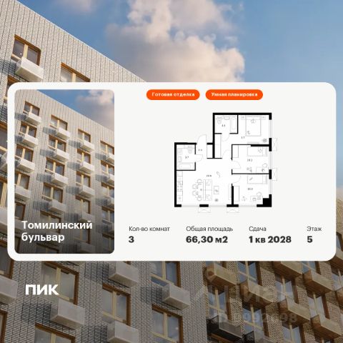 Продаётся 3-комн. квартира площадью 66,3 кв.м на 5 этаже 25 этажного дома (Корпус 5-8, Секция 2) проекта ПИК Томилинский бульвар. Светлый просторный подъезд на уровне земли, функциональная планировка, большие окна, c отделкой. Жилой квартал "Томилинский бульвар" возводится рядом с Кузьминским парком в Котельниках. В 20 минутах пешком метро "Котельники", а на автомобиле 4 минуты до Новорязанского шоссе и 6 минут - до МКАД. В жилом квартале 11 корпусов. Высота домов - 25 этажей. В "Томилинском бульваре" будут три собственных детских сада, поликлиника, паркинги для жителей и гостей квартала, парки с Wi-Fi во дворе каждого дома - с местами для спокойного отдыха, спортивными и детскими площадками. На первых этажах откроются кафе, магазины и другие сервисы, важные для комфортной жизни. В районе, где строится "Томилинский бульвар", всё рядом: школы, детские сады, магазины, торговые центры - например, до "МЕГА Белая Дача" можно доехать за 15 минут. Ещё здесь много мест для прогулок и отдыха на природе, совсем рядом благоустроенный сквер "Патриот". В 13 минутах пешком находится парк "Кузьминки", а в 12 минутах на автомобиле - Люберецкие карьеры, где можно ловить рыбу, загорать и заниматься водными видами спорта в экстрим-парке. Артикул 578032 (Застройщик АО "Яркий мир")
