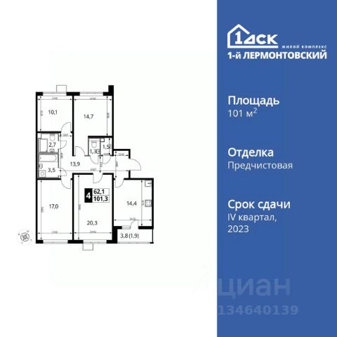 Разумный торг! Продается 4-комнатная квартира в новостройке в Котельниках.