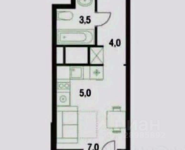 Общая площадь: 35.00 м.кв., Жилая площадь: 17.00 м.кв., Площадь кухни: 7.00 м.кв.