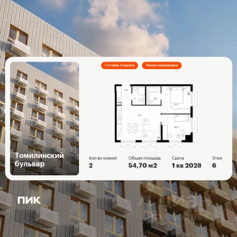 Продаётся 2-комн. квартира площадью 50,8 кв.м на 6 этаже 25 этажного дома (Корпус 5-8, Секция 2) проекта ПИК Томилинский бульвар. Светлый просторный подъезд на уровне земли, функциональная планировка, большие окна, c отделкой. Жилой квартал "Томилинский бульвар" возводится рядом с Кузьминским парком в Котельниках. В 20 минутах пешком метро "Котельники", а на автомобиле 4 минуты до Новорязанского шоссе и 6 минут - до МКАД. В жилом квартале 11 корпусов. Высота домов - 25 этажей. В "Томилинском бульваре" будут три собственных детских сада, поликлиника, паркинги для жителей и гостей квартала, парки с Wi-Fi во дворе каждого дома - с местами для спокойного отдыха, спортивными и детскими площадками. На первых этажах откроются кафе, магазины и другие сервисы, важные для комфортной жизни. В районе, где строится "Томилинский бульвар", всё рядом: школы, детские сады, магазины, торговые центры - например, до "МЕГА Белая Дача" можно доехать за 15 минут. Ещё здесь много мест для прогулок и отдыха на природе, совсем рядом благоустроенный сквер "Патриот". В 13 минутах пешком находится парк "Кузьминки", а в 12 минутах на автомобиле - Люберецкие карьеры, где можно ловить рыбу, загорать и заниматься водными видами спорта в экстрим-парке. Артикул 578036 (Застройщик АО "Яркий мир")
