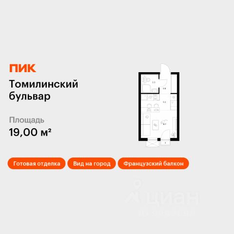 Продаётся квартира-студия площадью 21,4 кв.м на 13 этаже 25 этажного дома (Корпус 5-8, Секция 1) проекта ПИК Томилинский бульвар. Светлый просторный подъезд на уровне земли, функциональная планировка, большие окна, c отделкой. Жилой квартал "Томилинский бульвар" возводится рядом с Кузьминским парком в Котельниках. В 20 минутах пешком метро "Котельники", а на автомобиле 4 минуты до Новорязанского шоссе и 6 минут - до МКАД. В жилом квартале 11 корпусов. Высота домов - 25 этажей. В "Томилинском бульваре" будут три собственных детских сада, поликлиника, паркинги для жителей и гостей квартала, парки с Wi-Fi во дворе каждого дома - с местами для спокойного отдыха, спортивными и детскими площадками. На первых этажах откроются кафе, магазины и другие сервисы, важные для комфортной жизни. В районе, где строится "Томилинский бульвар", всё рядом: школы, детские сады, магазины, торговые центры - например, до "МЕГА Белая Дача" можно доехать за 15 минут. Ещё здесь много мест для прогулок и отдыха на природе, совсем рядом благоустроенный сквер "Патриот". В 13 минутах пешком находится парк "Кузьминки", а в 12 минутах на автомобиле - Люберецкие карьеры, где можно ловить рыбу, загорать и заниматься водными видами спорта в экстрим-парке. Артикул 989502 (Застройщик АО "Яркий мир")