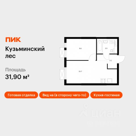 Продаётся 1-комн. квартира площадью 35,5 кв.м на 25 этаже 25 этажного дома (Корпус 10, Секция 1) проекта ПИК Кузьминский лес. Светлый просторный подъезд на уровне земли, функциональная планировка, большие окна, c отделкой. Жилой квартал "Кузьминский лес" находится в Московской области, в городе Котельники. Отсюда за 18 минут можно дойти до метро "Котельники", а за 5 минут — доехать на машине до МКАД. В проекте — жилые дома с уютными дворами, школа, детский сад, подземные и гостевые паркинги. Вокруг — развитый район с детскими садами, школами и поликлиниками. Рядом есть стадион, "МЕГА Белая Дача" и гипермаркеты Selgros, Castorama и Real. Отдохнуть от городской жизни можно в Кузьминском парке и усадьбе "Белая Дача", которые совсем недалеко от "Кузьминского леса". Артикул 931373 (Застройщик АО "Компания АТОЛ")