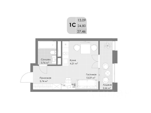 Вашему вниманию предлагается просторная однокомнатная КВАРТИРА на 23-м этаже площадью 37,7 кв. м. С ОКНАМИ НА ДВЕ СТОРОНЫ (во двор и на улицу).