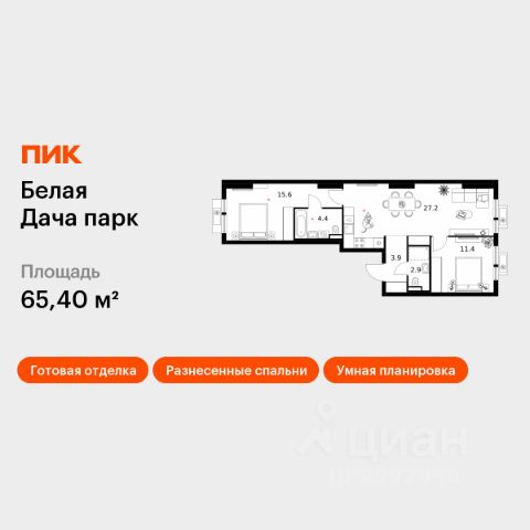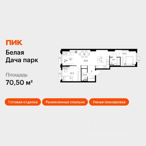 Продаётся 2-комн. квартира площадью 50,4 кв.м на 12 этаже 25 этажного дома (Корпус 16.2, Секция 5) проекта ПИК Белая Дача парк. Светлый просторный подъезд на уровне земли, функциональная планировка, большие окна, c отделкой. "Белая Дача парк" — новый проект в Московской области, в городе Котельники. Квартал расположен в 2 километрах от МКАД и в 7 минутах на автомобиле от метро "Котельники". Уже сейчас вы можете приобрести квартиры с отделкой в готовых и строящихся корпусах. На территории квартала будут построены 22 дома, две школы, поликлиники и пять детских садов. Один из центральных элементов проекта — широкий пешеходный бульвар, где мы создали пространства для спорта, прогулок и отдыха. Яркой точкой притяжения стал PlayHub "Ферма" — масштабная игровая зона с домом-мельницей, искусственным ручьём и развивающими элементами для детей. В 2024 году PlayHub стал победителем "Всероссийской премии лучших проектов создания игровой среды" и получил награду "Лучшая реализация игровой площадки среди девелоперских проектов". Рядом с кварталом много магазинов и развлекательных центров: "Outlet Village Белая дача", "МЕГА Белая дача", гипермаркет "Глобус", центр оптовой торговли Selgros. До Люберецких карьеров можно добраться на машине за 9 минут, а до парка "Кузьминки" — за полчаса. Артикул 1008447 (Застройщик АО "СЗ "Новый Горизонт") Купить квартиру от застройщика в Котельниках.