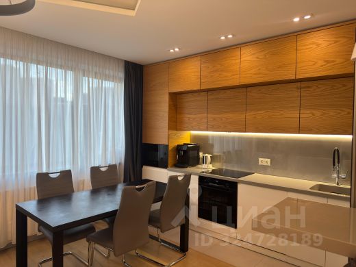 Основная площадь квартиры составляет 75,9 кв. м, из которых 45 кв. м — это жилая площадь, что обеспечивает достаточно пространства для жизни всей семьи. Просторная кухня площадью 21 кв. м с островом — настоящее сердце квартиры, укомплектована качественной встроенной техникой, включая большую индукционную плиту, холодильник и морозильник. Плюс, для вашего удобства, имеются стиральная и сушильная машины в отдельной прачечной.