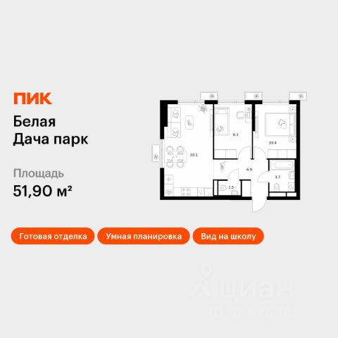 Продаётся 2-комн. квартира площадью 50,3 кв.м на 12 этаже 25 этажного дома (Корпус 16.1, Секция 1) проекта ПИК Белая Дача парк. Светлый просторный подъезд на уровне земли, функциональная планировка, большие окна, c отделкой. "Белая Дача парк" — новый проект в Московской области, в городе Котельники. Квартал расположен в 2 километрах от МКАД и в 7 минутах на автомобиле от метро "Котельники". Уже сейчас вы можете приобрести квартиры с отделкой в готовых и строящихся корпусах. На территории квартала будут построены 22 дома, две школы, поликлиники и пять детских садов. Один из центральных элементов проекта — широкий пешеходный бульвар, где мы создали пространства для спорта, прогулок и отдыха. Яркой точкой притяжения стал PlayHub "Ферма" — масштабная игровая зона с домом-мельницей, искусственным ручьём и развивающими элементами для детей. В 2024 году PlayHub стал победителем "Всероссийской премии лучших проектов создания игровой среды" и получил награду "Лучшая реализация игровой площадки среди девелоперских проектов". Рядом с кварталом много магазинов и развлекательных центров: "Outlet Village Белая дача", "МЕГА Белая дача", гипермаркет "Глобус", центр оптовой торговли Selgros. До Люберецких карьеров можно добраться на машине за 9 минут, а до парка "Кузьминки" — за полчаса. Артикул 1007638 (Застройщик АО "СЗ "Новый Горизонт")