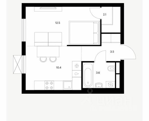 Общая площадь: 42,6 кв.м (без учета лоджии) простор, наполненный воздухом и светом.