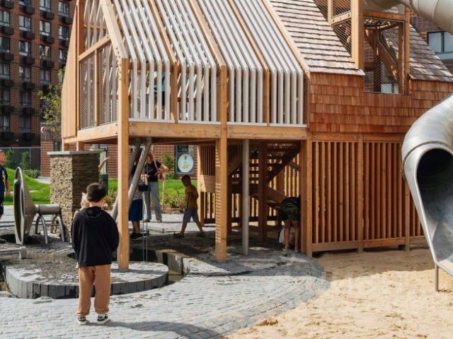В закрытом от автомобилей дворе комплекса выполнен ландшафтный дизайн, предусмотрены отдельные игровые зоны для детей разных возрастов и воркаут-зона. Первые этажи зданий отведены под коммерческие помещения, на территории комплекса открыты спа-комплекс и фитнес центр, продуктовые магазины, рестораны различных направлений, сетевые кофейни и суши-бары, салоны красоты, кабинеты косметологии и барбершопы. Для владельцев автомобилей предусмотрен подземный паркинг с кладовыми помещениями, и помещениями для хранения велосипедов. Безопасность обеспечивают круглосуточная охрана и видеонаблюдение. Доступ во внутреннее пространство осуществляется по персональным картам.