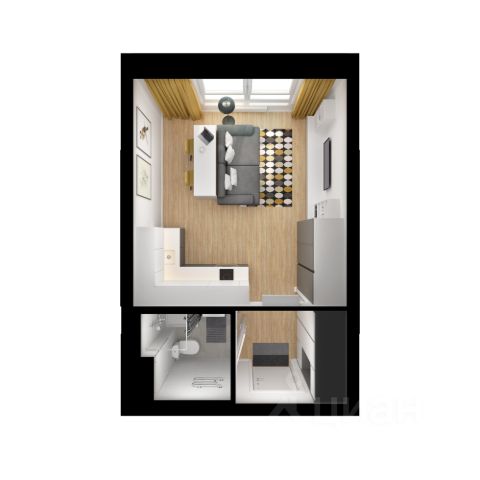 Площадь квартиры 32,3 кв.м, просторная кухня 10,8 кв.м, комната 13,8, лоджия 3,8 кв.м.