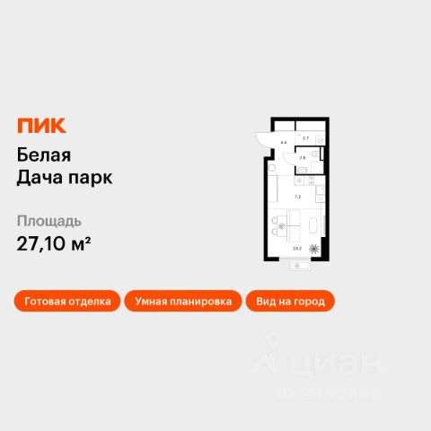 Продаётся квартира-студия площадью 21,8 кв.м на 11 этаже 25 этажного дома (Корпус 16.1, Секция 1) проекта ПИК Белая Дача парк. Светлый просторный подъезд на уровне земли, функциональная планировка, большие окна, c отделкой. "Белая Дача парк" — новый проект в Московской области, в городе Котельники. Квартал расположен в 2 километрах от МКАД и в 7 минутах на автомобиле от метро "Котельники". Уже сейчас вы можете приобрести квартиры с отделкой в готовых и строящихся корпусах. На территории квартала будут построены 22 дома, две школы, поликлиники и пять детских садов. Один из центральных элементов проекта — широкий пешеходный бульвар, где мы создали пространства для спорта, прогулок и отдыха. Яркой точкой притяжения стал PlayHub "Ферма" — масштабная игровая зона с домом-мельницей, искусственным ручьём и развивающими элементами для детей. В 2024 году PlayHub стал победителем "Всероссийской премии лучших проектов создания игровой среды" и получил награду "Лучшая реализация игровой площадки среди девелоперских проектов". Рядом с кварталом много магазинов и развлекательных центров: "Outlet Village Белая дача", "МЕГА Белая дача", гипермаркет "Глобус", центр оптовой торговли Selgros. До Люберецких карьеров можно добраться на машине за 9 минут, а до парка "Кузьминки" — за полчаса. Артикул 1007617 (Застройщик АО "СЗ "Новый Горизонт") Купить квартиру-студию в панельном доме в Котельниках.