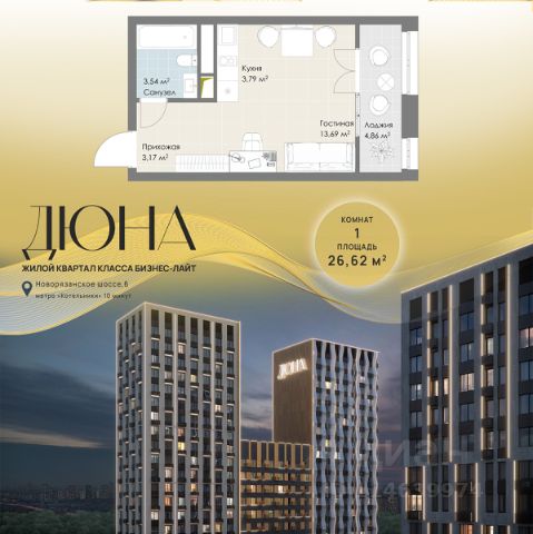 Современный жилой квартал бизнес-класса "Дюна" расположен в 10 минутах ходьбы от станции метро "Котельники" (1,2 км) на пересечении Новорязанского и Дзержинского шоссе. Квартал находится в районе с развитой инфраструктурой: в непосредственной близости расположены школы, детские сады, поликлиники, а также гипермаркеты и торговые комплексы, такие как "Metro", "Глобус", "Лемана Про" (Леруа Мерлен), "МЕГА Белая Дача", "Outlet Village Белая Дача" и другие. В шаговой доступности находятся физкультурно-оздоровительный комплекс с бассейном и теннисными кортами, а также благоустроенный лесопарк "Кузьминки" площадью 1189 га. Неподалёку расположены пляжи Дзержинских карьеров с экстрим-парком и горнолыжными трассами, Томилинский лесопарк с лыжной базой и Жулебинский лесопарк. Застройщик реализует современную урбанистическую концепцию "Город в городе", которая подразумевает наличие собственной полноценной инфраструктуры на территории жилого комплекса, включая школу, детские сады, торговую галерею, бизнес-центр, пункт полиции и медицинский центр. Общая площадь застройки составляет 12,2 га. Квартиры представлены в диапазоне планировок от студий до четырёхкомнатных, в обычном и евроформате. На этажах расположено от 3 до 4 бесшумных скоростных лифтов при количестве квартир от 4 до 7 на этаже. Квартиры сдаются с предчистовой отделкой (white box). Здания переменной этажности строятся по технологии монолит-кирпич, а фасады выполнены с использованием инновационной системы вентилируемого комбинированного фасада.Комфорт на внутренней территории обеспечивается за счёт принципа "двор без машин", системы доступа по карте и круглосуточного видеонаблюдения. Приобрести квартиру можно с использованием материнского капитала, беспроцентной рассрочки или ипотечных программ. При 100% оплате предусмотрены индивидуальные условия. Квартиры-студии первичка в Котельниках.