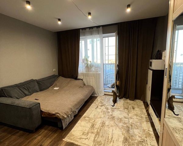 Качественный ремонт и зонирование. Продуманное пространство, где спальная зона гармонично отделена от кухни-гостиной. Отдельно утеплен балкон, сделан теплый пол.