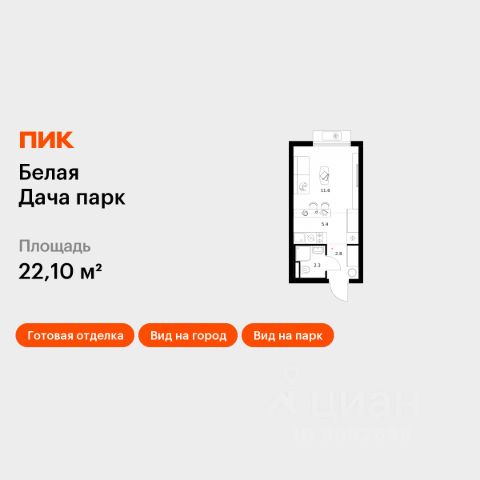 Продаётся квартира-студия площадью 19,9 кв.м на 21 этаже 25 этажного дома (Корпус 16.2, Секция 5) проекта ПИК Белая Дача парк. Светлый просторный подъезд на уровне земли, функциональная планировка, большие окна, c отделкой. "Белая Дача парк" — новый проект в Московской области, в городе Котельники. Квартал расположен в 2 километрах от МКАД и в 7 минутах на автомобиле от метро "Котельники". Уже сейчас вы можете приобрести квартиры с отделкой в готовых и строящихся корпусах. На территории квартала будут построены 22 дома, две школы, поликлиники и пять детских садов. Один из центральных элементов проекта — широкий пешеходный бульвар, где мы создали пространства для спорта, прогулок и отдыха. Яркой точкой притяжения стал PlayHub "Ферма" — масштабная игровая зона с домом-мельницей, искусственным ручьём и развивающими элементами для детей. В 2024 году PlayHub стал победителем "Всероссийской премии лучших проектов создания игровой среды" и получил награду "Лучшая реализация игровой площадки среди девелоперских проектов". Рядом с кварталом много магазинов и развлекательных центров: "Outlet Village Белая дача", "МЕГА Белая дача", гипермаркет "Глобус", центр оптовой торговли Selgros. До Люберецких карьеров можно добраться на машине за 9 минут, а до парка "Кузьминки" — за полчаса. Артикул 1008581 (Застройщик АО "СЗ "Новый Горизонт") Квартира-студия квартир-студий в Белая Дача парк в Котельниках.