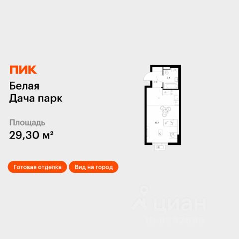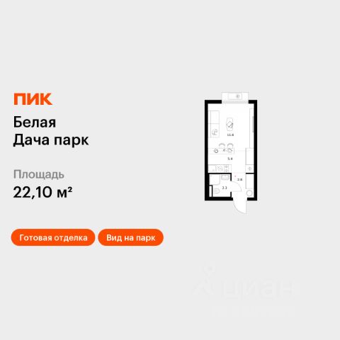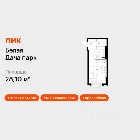 Продаётся квартира-студия площадью 28,1 кв.м на 3 этаже 17 этажного дома (Корпус 22.2, Секция 8) проекта ПИК Белая Дача парк. Светлый просторный подъезд на уровне земли, функциональная планировка, большие окна, c отделкой. "Белая Дача парк" — новый проект в Московской области, в городе Котельники. Квартал расположен в 2 километрах от МКАД и в 7 минутах на автомобиле от метро "Котельники". Уже сейчас вы можете приобрести квартиры с отделкой в готовых и строящихся корпусах. На территории квартала будут построены 22 дома, две школы, поликлиники и пять детских садов. Один из центральных элементов проекта — широкий пешеходный бульвар, где мы создали пространства для спорта, прогулок и отдыха. Яркой точкой притяжения стал ПлейХаб "Ферма" — масштабная игровая зона с домом-мельницей, искусственным ручьём и развивающими элементами для детей. В 2024 году ПлейХаб стал победителем "Всероссийской премии лучших проектов создания игровой среды" и получил награду "Лучшая реализация игровой площадки среди девелоперских проектов". Рядом с кварталом много магазинов и развлекательных центров: "МЕГА Белая дача" и гипермаркет "Глобус". До Люберецких карьеров можно добраться на машине за 9 минут, а до парка "Кузьминки" — за полчаса. Артикул 1056233 (Застройщик АО "СЗ "Новый Горизонт") Квартира-студия квартир-студий в Белая Дача парк в Котельниках.