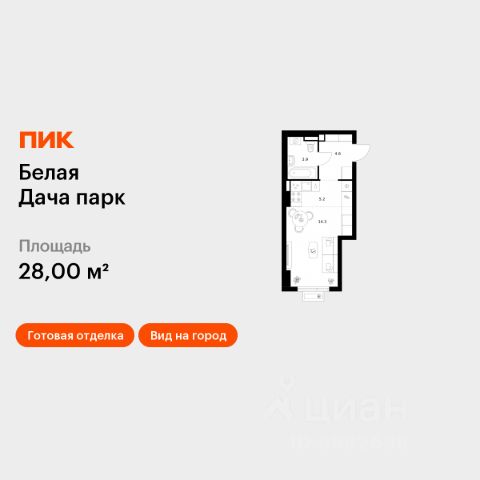 Продаётся квартира-студия площадью 19,9 кв.м на 11 этаже 15 этажного дома (Корпус 16.2, Секция 6) проекта ПИК Белая Дача парк. Светлый просторный подъезд на уровне земли, функциональная планировка, большие окна, c отделкой. "Белая Дача парк" — новый проект в Московской области, в городе Котельники. Квартал расположен в 2 километрах от МКАД и в 7 минутах на автомобиле от метро "Котельники". Уже сейчас вы можете приобрести квартиры с отделкой в готовых и строящихся корпусах. На территории квартала будут построены 22 дома, две школы, поликлиники и пять детских садов. Один из центральных элементов проекта — широкий пешеходный бульвар, где мы создали пространства для спорта, прогулок и отдыха. Яркой точкой притяжения стал ПлейХаб "Ферма" — масштабная игровая зона с домом-мельницей, искусственным ручьём и развивающими элементами для детей. В 2024 году ПлейХаб стал победителем "Всероссийской премии лучших проектов создания игровой среды" и получил награду "Лучшая реализация игровой площадки среди девелоперских проектов". Рядом с кварталом много магазинов и развлекательных центров: "МЕГА Белая дача" и гипермаркет "Глобус". До Люберецких карьеров можно добраться на машине за 9 минут, а до парка "Кузьминки" — за полчаса. Артикул 1008765 (Застройщик АО "СЗ "Новый Горизонт") Продается квартира-студия в Котельниках.