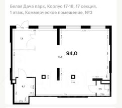 Продается помещение площадью 80,6 кв.м, расположенное на 1 этаже в ЖК "Белая дача парк" от ПИК 2022 года постройки.