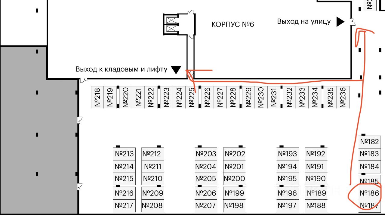 Машиноместо #186 10 метров до выхода к лифту, 20 метров до выхода на улицу. Вход, выход, въезд и выезд из 6 корпуса (Сосновая, дом 5)