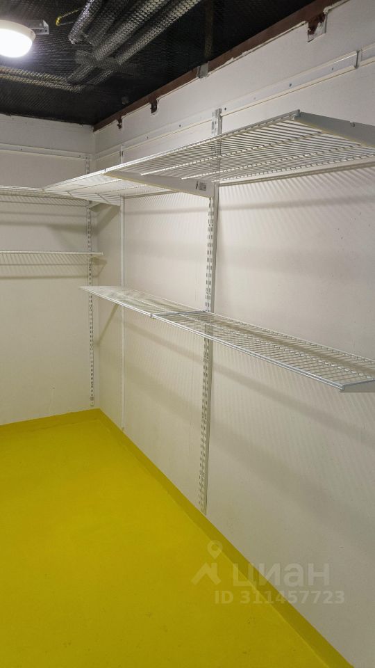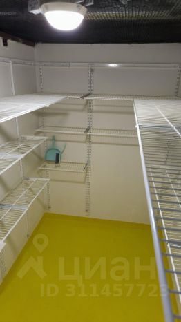 Площадь склада 5.3 квадратных метра, дополнительно установлена надёжная настенная система хранения.