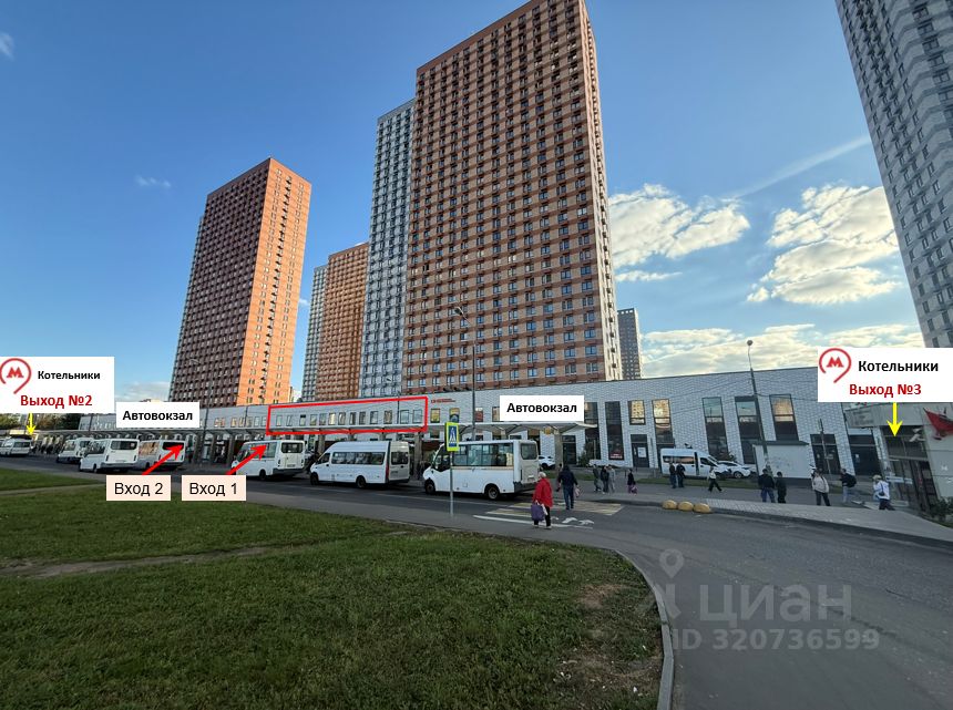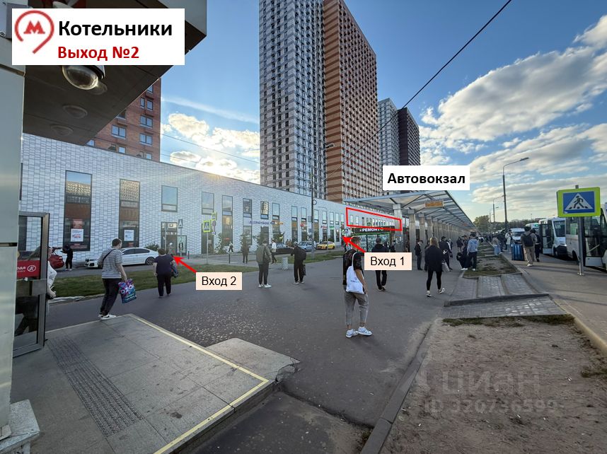 О локации : Помещение расположено в районе Котельники Московской области непосредственно около выхода с конечной станции метро Котельники. Очень высокий пешеходный и автомобильный трафик . Одно из лучших предложений в районе. Соседи сетевые арендаторы. Рядом расположен междугородний автовокзал и остановки наземного общественного транспорта.