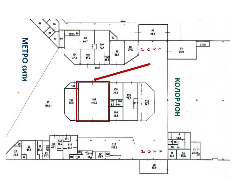 - Помещение сквозное, охватывает все потоки в ТЦ